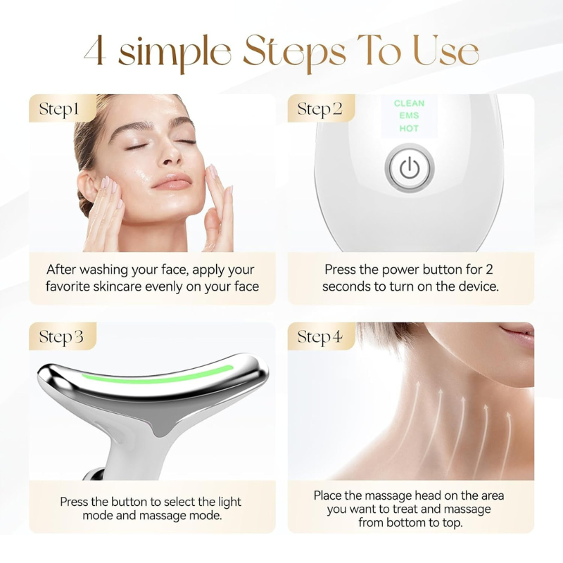🔥 Värmemassage: Lindrar svullnad, ökar blodflödet och slappnar av ansiktsmusklerna för en fräsch, ungdomlig lyster.