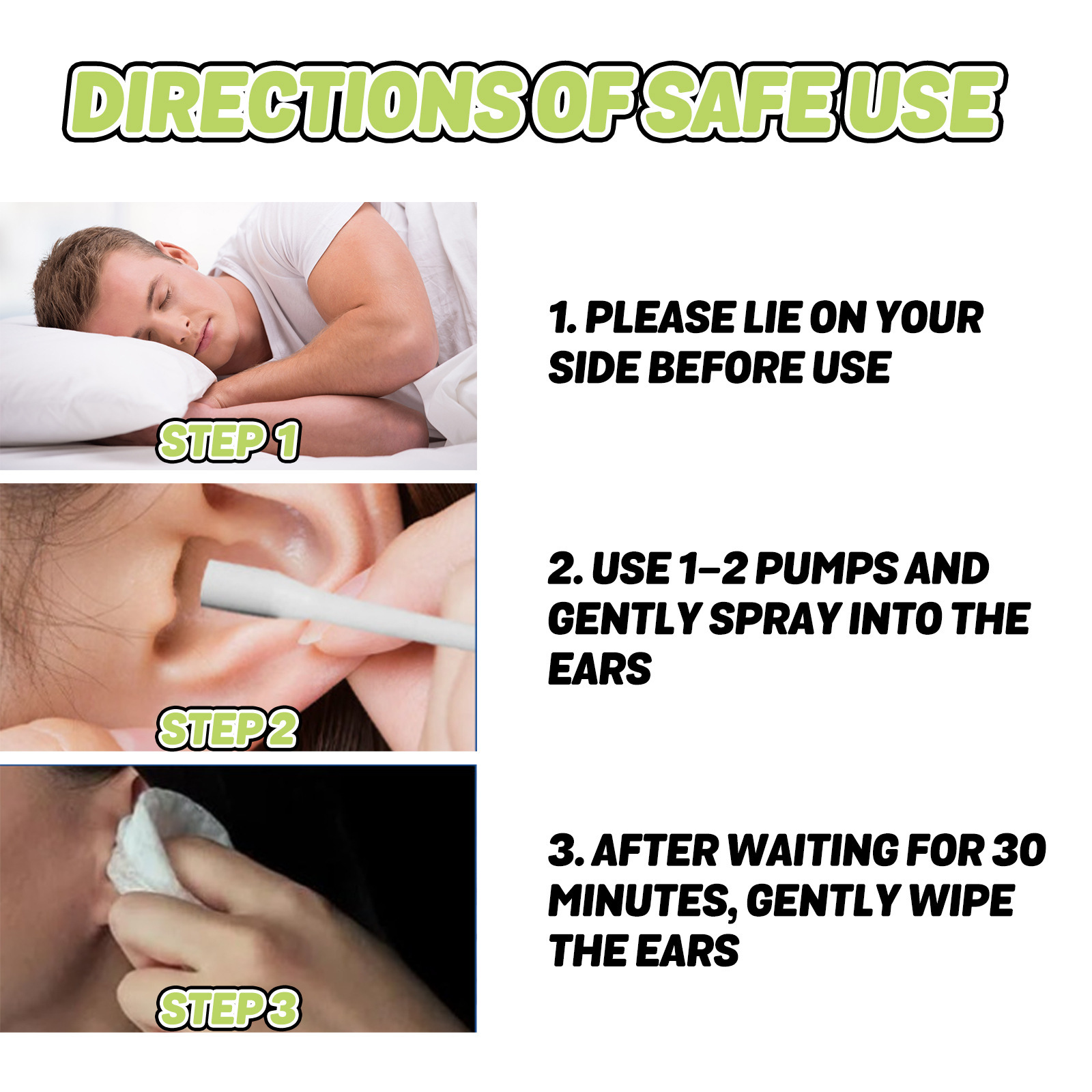 2. Spraya 2–3 gånger dagligen: Rikta sprayen mot hörselgången