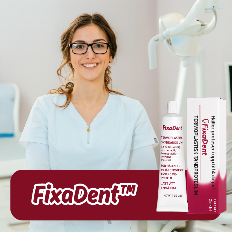 Kämpar du med lösa tandproteser, obehag eller rädslan för att de plötsligt lossnar? FixaDent™ är den tandläkarrekommenderade lösningen som ger upp till 24 timmars säker fästning – utan klibbig känsla, dålig smak eller irritation.
