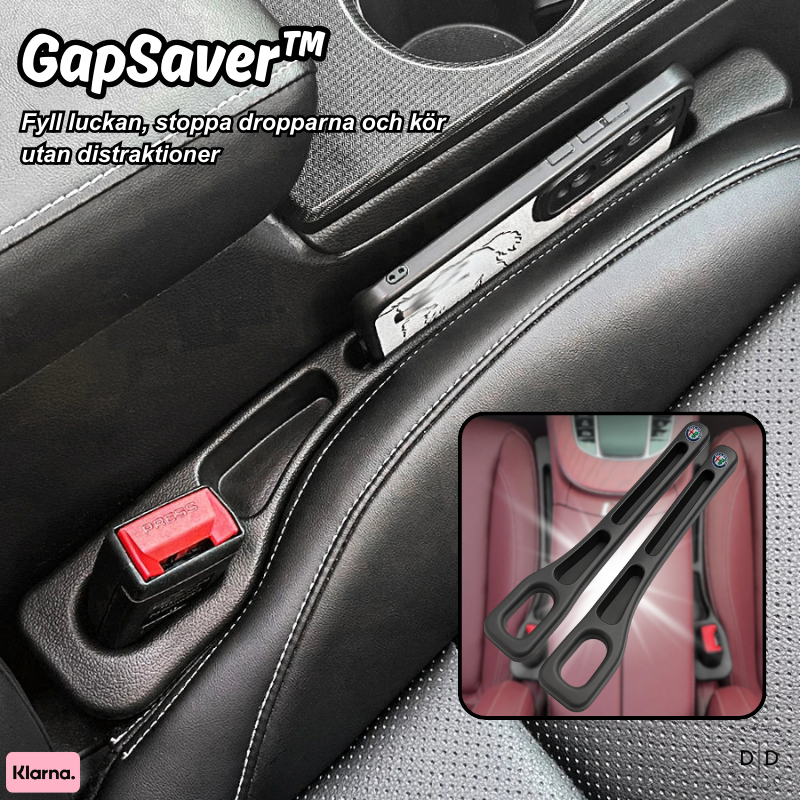 Sig farvel til mistede ting, akavede stræk og farlige distraktioner. GapSaver™ er den enkle, men uundværlige løsning, der fylder hullet mellem sædet og midterkonsollen – så ingenting nogensinde falder ned dér igen.
