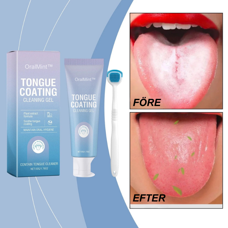 ✅ Tar bort beläggningar på tungan och orenheter i munnen