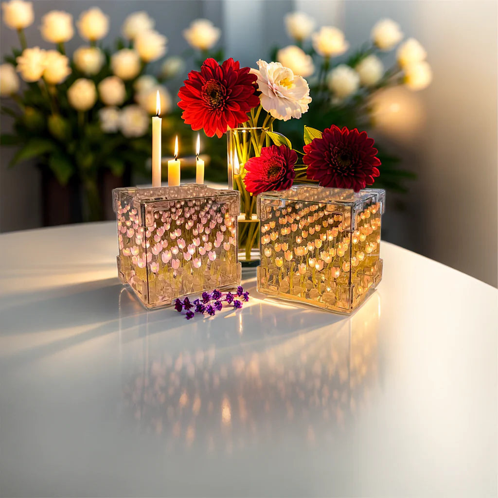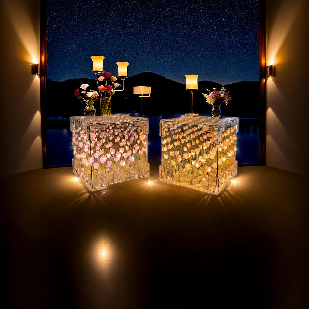 Tillverkad med precision – kubens spegelliknande design lyfter inredningen på dagen och förvandlas till ett tulpanupplyst underland på kvällen. Oavsett om du dekorerar vardagsrum, sovrum eller kontor, ger Tulpankub™ en konstnärlig känsla som fängslar.